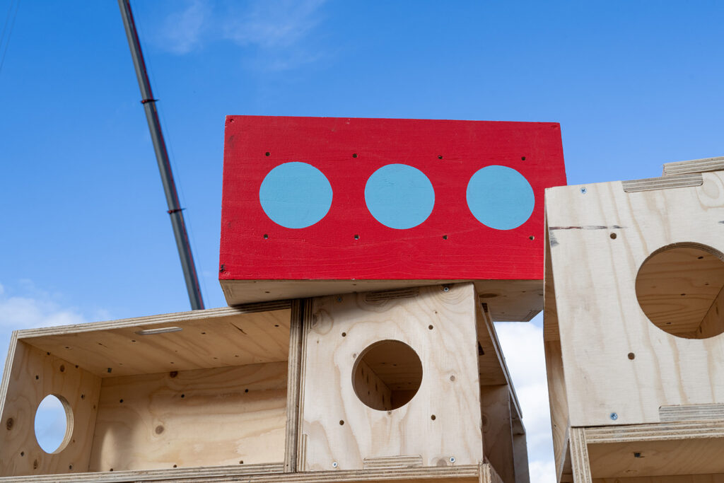 Captured at BLOQS, our Box Library photoshoot showcases the artistic versatility and circular potential against industrial surroundings. Under a rare burst of winter sun, our team experimented with abstract configurations to illustrate how our adaptable, CNC-cut pieces can bring projects to life.